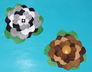 Flores feitas em feltro de vários tons de cores.