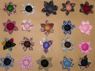 Todas com 6 pétalas sem recheio, com tecido em padrão, miolo em feltro e recheado.